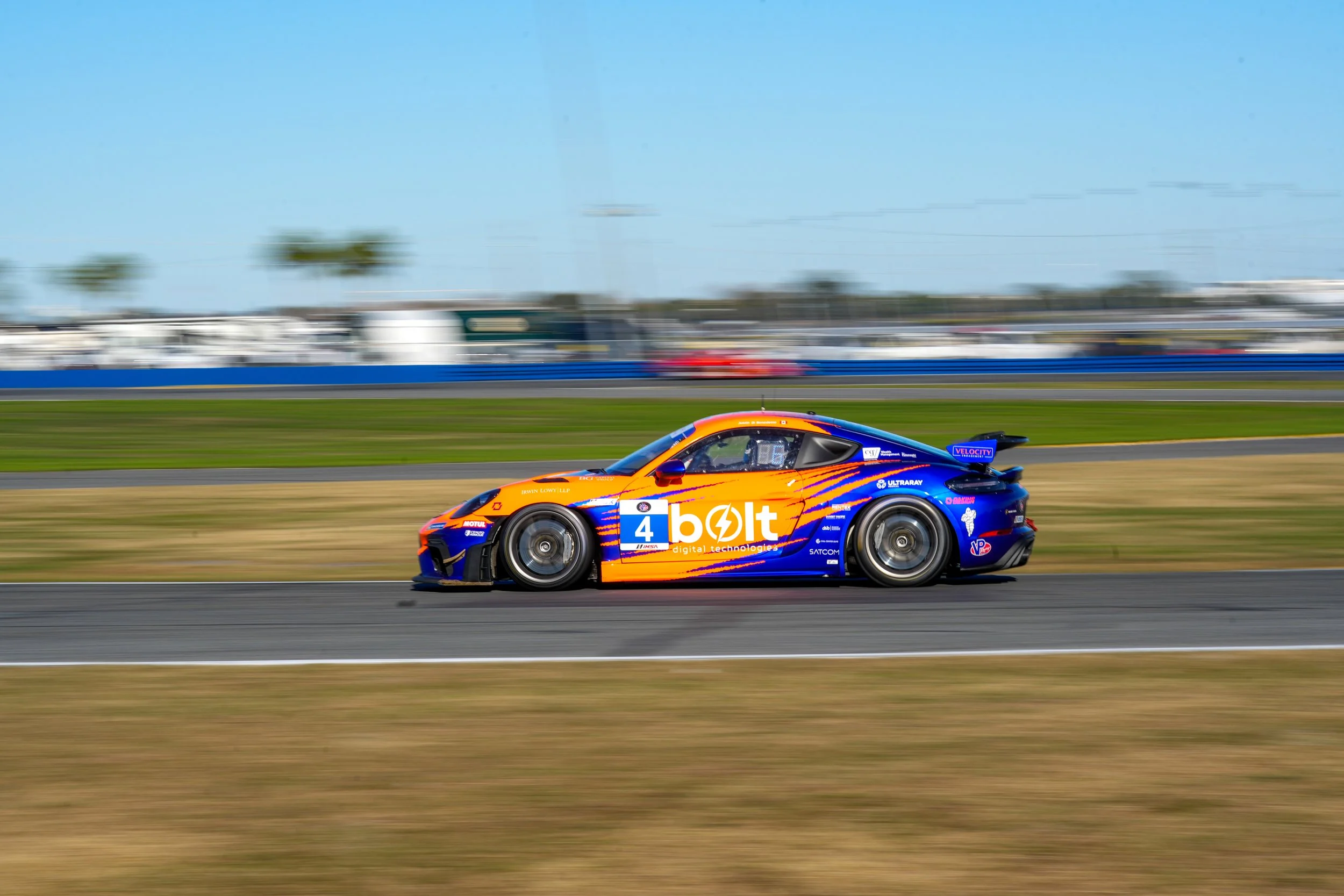 Canadian driver Justin Di Benedetto and his team Di Benedetto Racing wanted to start off their second season in IMSA VP Challenge by grabbing everyone’s attention. DAKINS DESIGN was up for the challenge, with an aggressive “tearing” graphic and high visibility dayglo orange over metallic blue base.