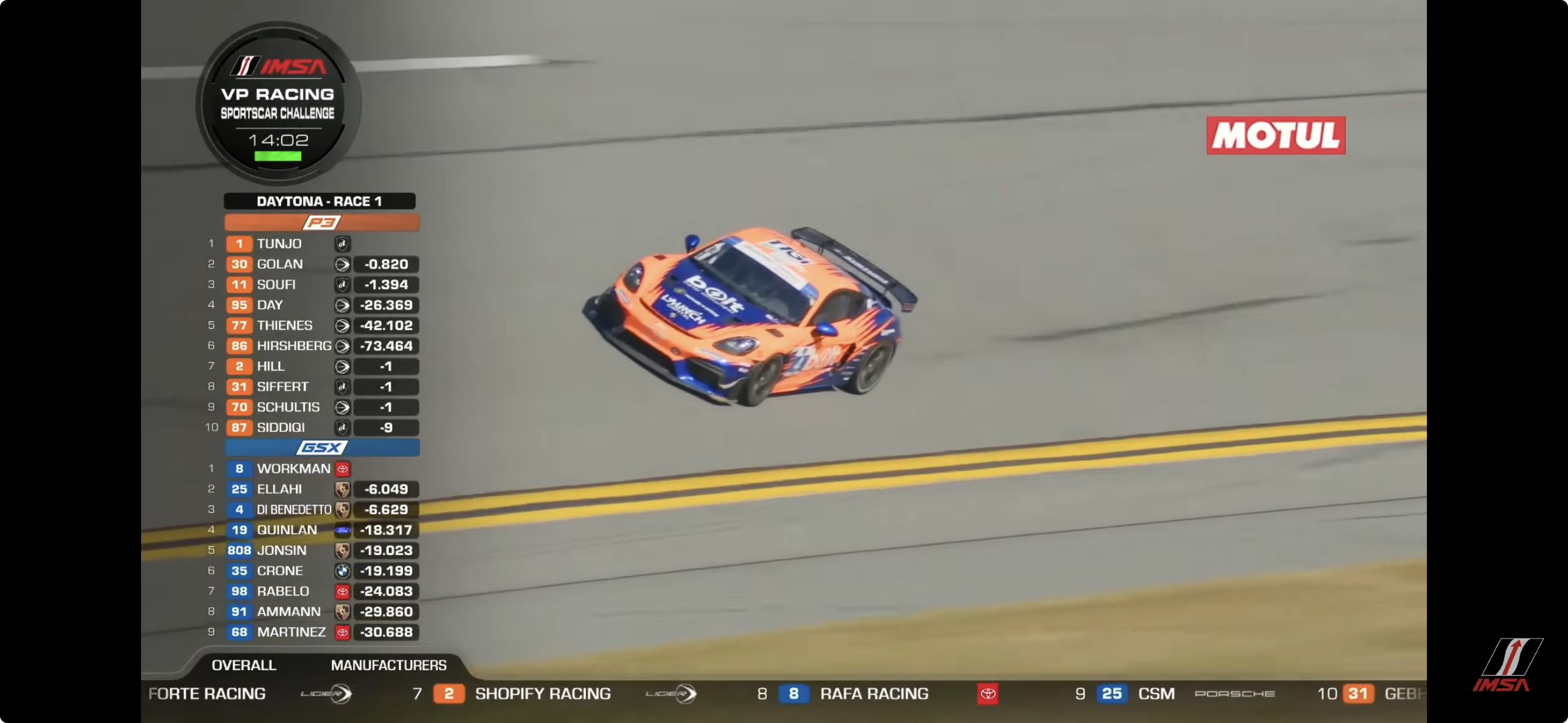 Large, high-contrast logos placed along the hood and roof area are key to get exposure during the IMSA broadcast on the high-banks of Daytona, even at lower resolution.